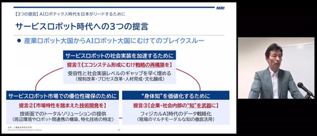 これまでの説明を総合して、AIロボティクス時代を日本がリードするための提言を3つ示します。