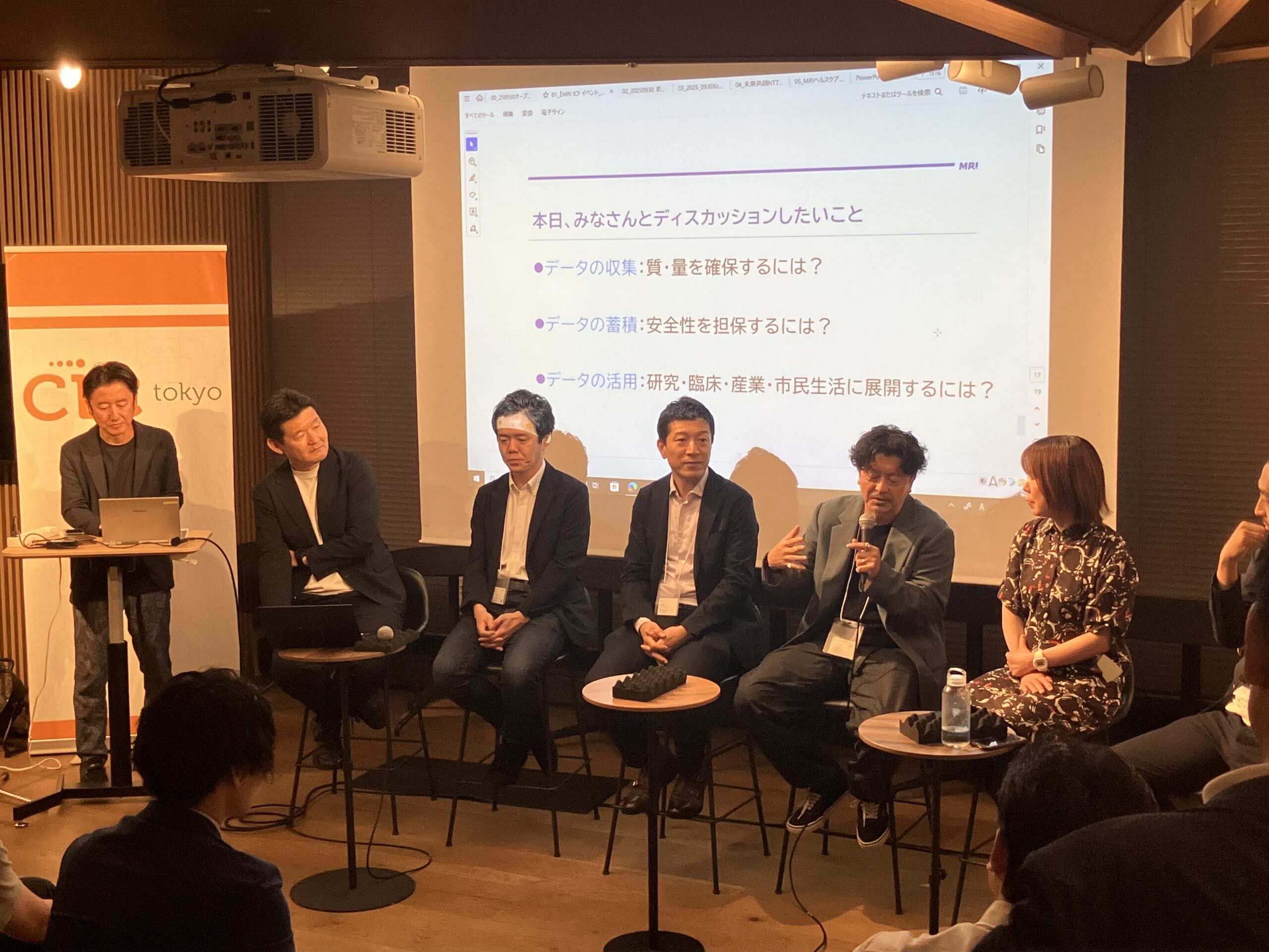9月30日、CIC Tokyo Venture Caféにて、トークセッション「データがつなぐ未来社会 ~医療からビジネス、そして市民へ~」を開催しました。本イベントはICF会員のヘルスケアイノベーション協会との共催で、医療・ヘルスケア領域におけるデータ活用の最前線を紹介し、未来社会における新しい価値創出の可能性を探る場を創ることを目指しています。