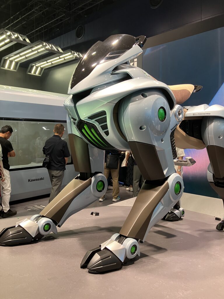 上述の通り、ロボットの社会実装は道半ばですが、技術の進歩は着実に進んでいます。そのロボットで、まず見学することになったのは、川崎重工株式会社の四足歩行ロボット「CORLEO(コルレオ)2」です。