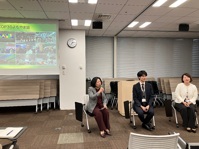 会場限定で開催されたCOP30よもやま話では、現地に赴いた研究員が公式議事録では語られない体験や出来事の解説を行い、交渉の裏側や会場の雰囲気をざっくばらんに語り、参加者にリアルな現場感を伝えた。